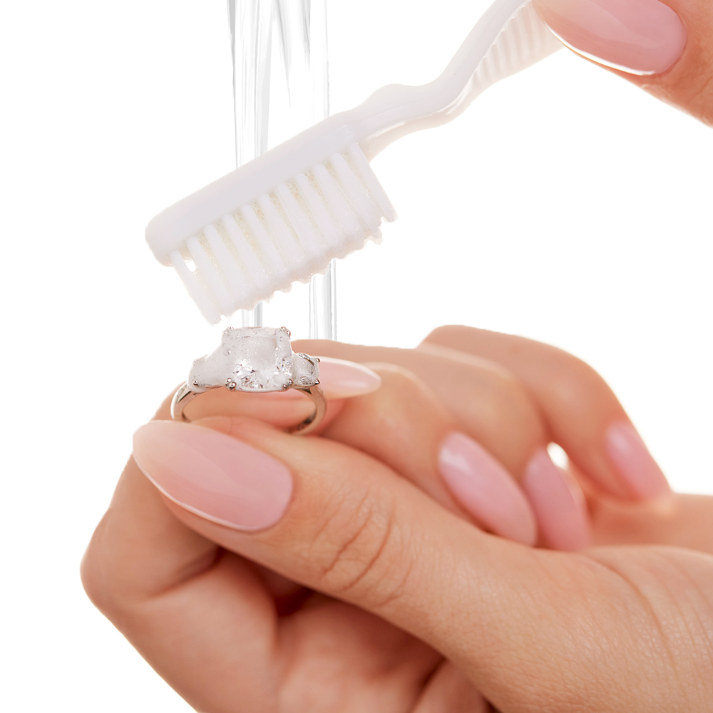 Rinse with water in the morning. For extra dirty diamonds, use the included brush to clean crooks and crevices.